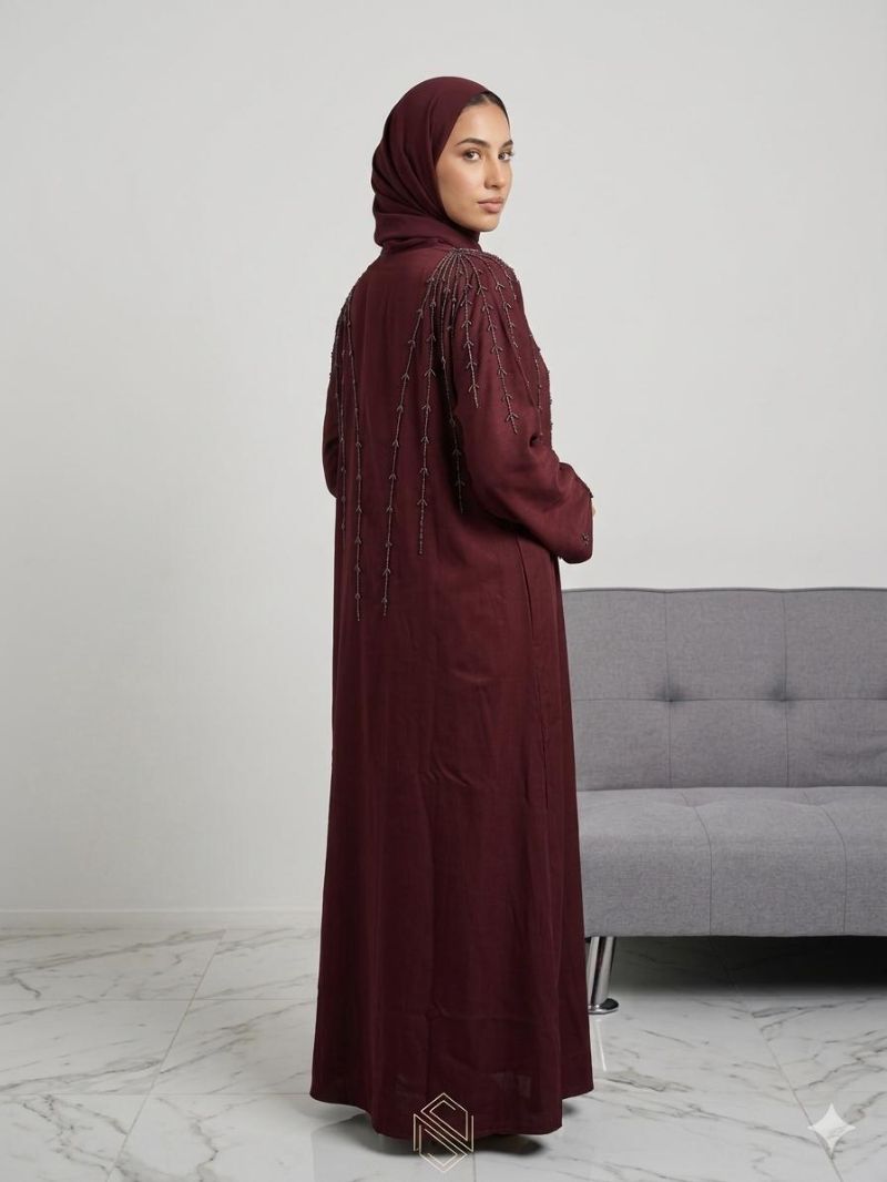 Elegant Linear Beaded Nida Abaya
