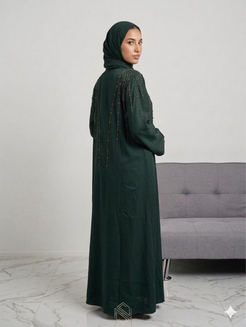 Elevate your modest wardrobe with our Elegant Linear Beaded Nida Abaya. Crafted from premium, silky-smooth flowy Nida fabric, this luxurious piece features exquisite hand-beaded linear detailing. Perfect for evening wear, Eid, and special occasions. Shop exclusive elegance at Sunnahuk.com