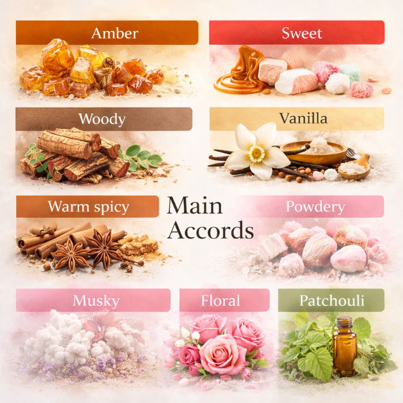 A rich and comforting fragrance where warm amber and sweet vanilla melt into soft woody notes, wrapped with gentle spices and a smooth musky finish. Elegant, cozy, and irresistibly inviting.