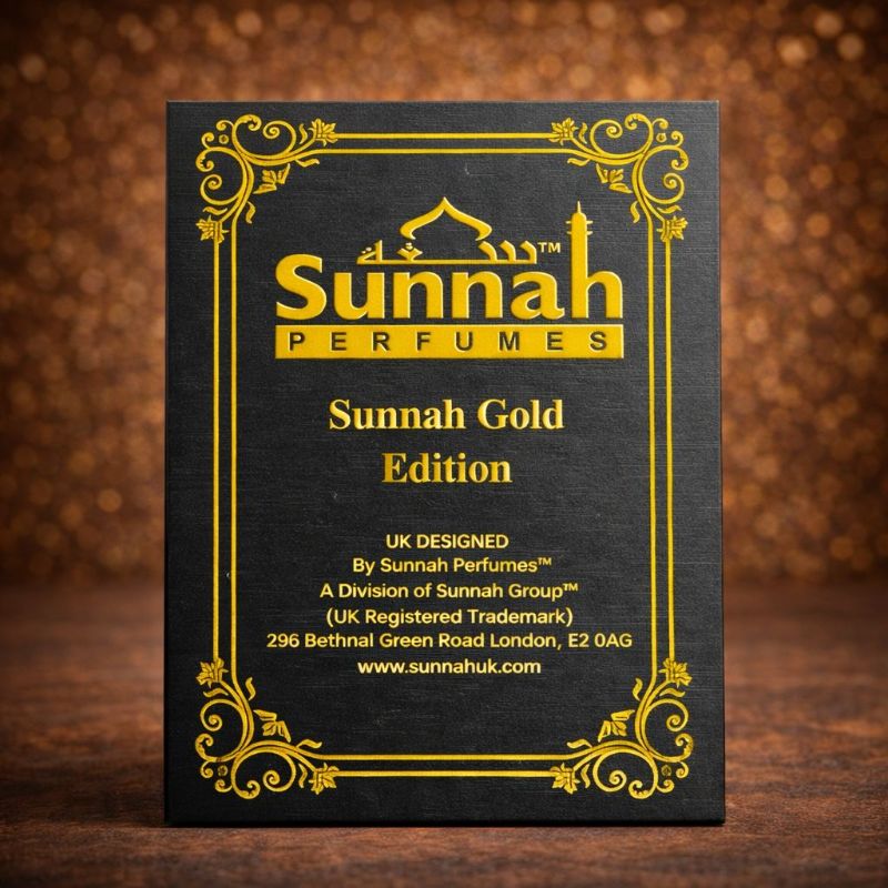 Sunnah Gold Edition A refined and elegant fragrance featuring smooth iris, soft powdery notes, and a warm woody–amber base. Fresh spicy and citrusy accents give it a modern, clean opening, making it perfect for daily wear as well as special occasions.